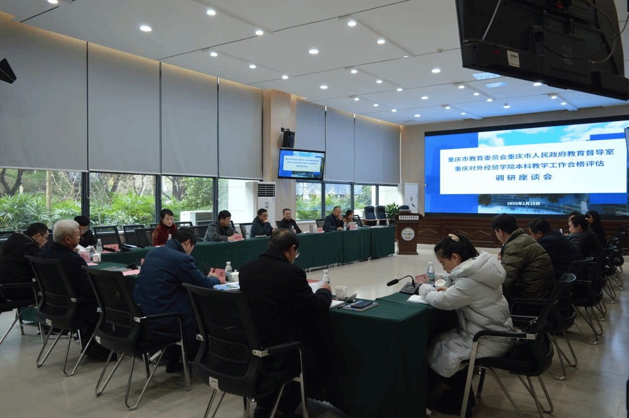 1月15日,学校在A9106召开重庆市教育委员会重庆市人民政府教育督导室重庆对外经贸学院本科教学工作合格评估调研座谈会。市教委督导室、市政府教育督导室领导一行,校长孙泽平,执行校长董志,部分职能部门负责人参加会议。会议由执行校长董志主持。