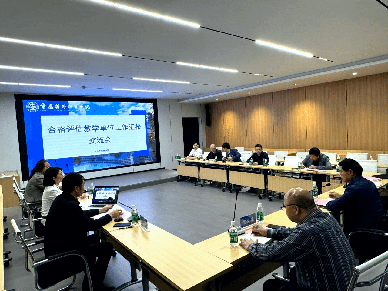 为进一步推动学校本科教学工作合格评估工作,学校于10月24日召开合格评估教学单位工作汇报交流会,本次交流会议分成三组,分别为A区9104会议室、9106会议室和9418会议室同时进行。三个分组由校长孙泽平,执行校长董志,评估专家朱新才教授任组长,党委书记何大海,副校长王乃武、杜斗恒、蒋满元任副组长,各教学单位院长和书记做工作汇报,部分部门负责人参加。