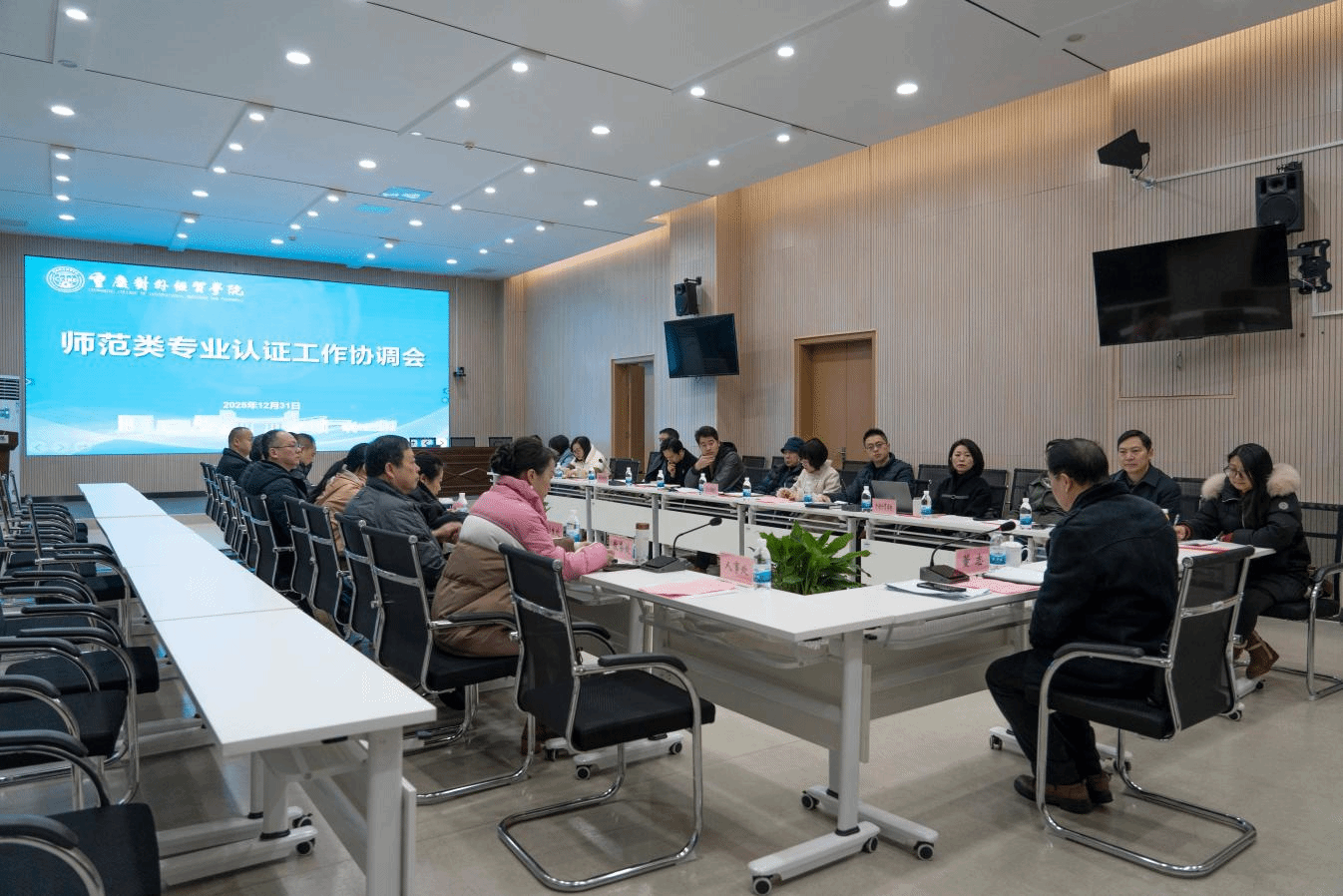 为扎实推进我校师范类专业认证工作,统一思想,明确任务,学校于2025年12月31日(星期三)上午9:00在A9106会议室组织召开师范类专业认证工作协调会。会议由教学评估建设办公室主任彭霄主持,执行校长董志出席会议并作重要讲话,相关职能部门负责人、相关学院党政负责人及副院长参加会议。